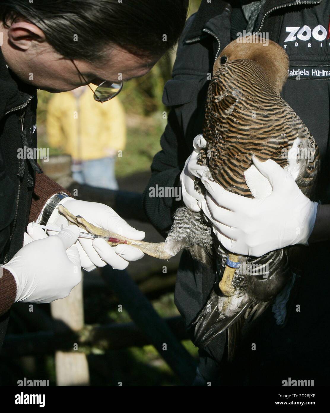 Ein Tierarzt Nimmt Eine Blutprobe Von Einer Magellan Gans Um Die Auswirkungen Der Impfung Gegen Die Vogelgrippe Im Zoo Zurich Zu Testen 7 Dezember 2006 Der Zoo Zurich Ist Einer Von Vier Schweizer